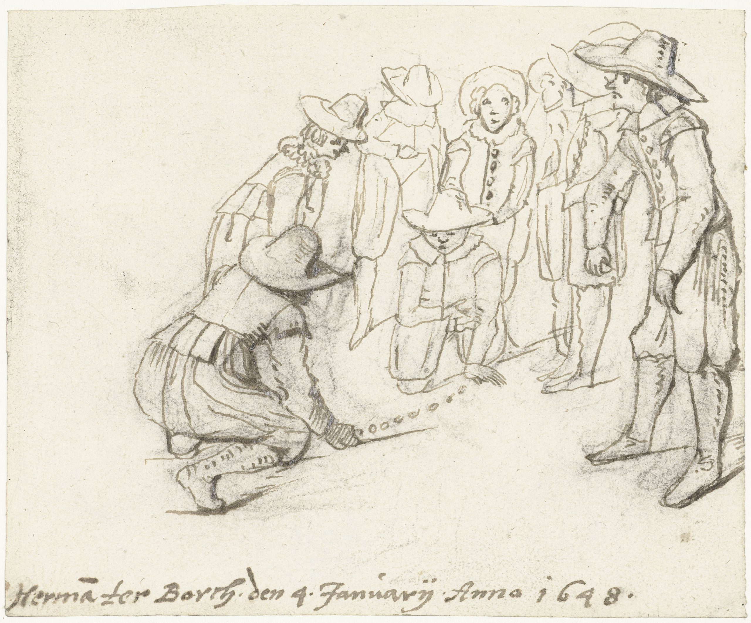 Uit de 17e eeuw zijn zes varianten van het knikkerspel bekend : bagorra, negenkuilen, notenschieten, potje knikkeren, stuiken en schreefje schieten. Bij de laatste wierp de speler vanaf de aanvangslijn, de meet, een knikker naar een lijn die ca. 3 meter van de meet af is getrokken, de schreef. Degene wiens knikker over of naast de schreef ging, was af.